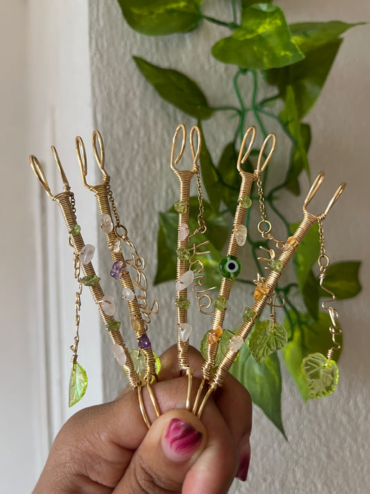 Colección de blunt holders hechos a mano con alambre non tarnish, piedras y cuarzos.