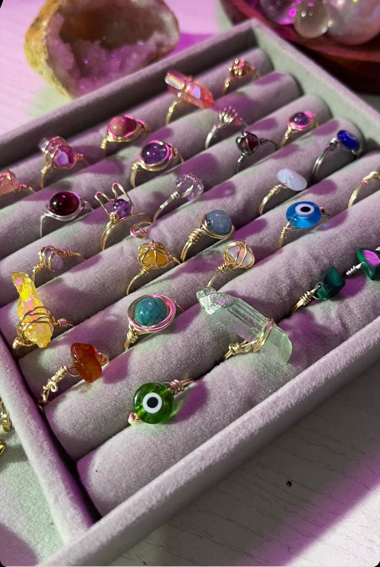 Wired wrapped rings made from small crystals. All available in gold or silver non tarnish wire.