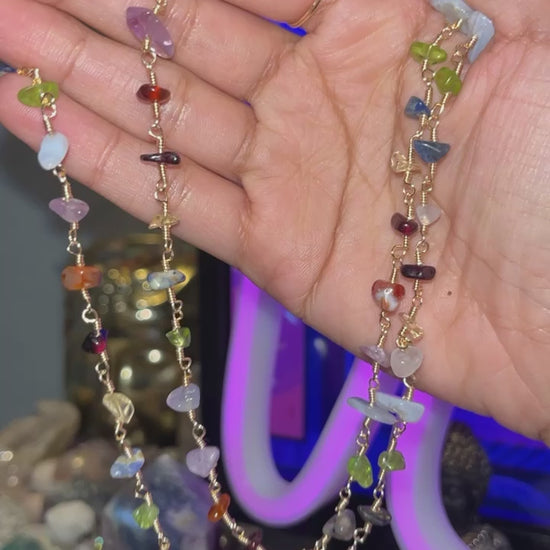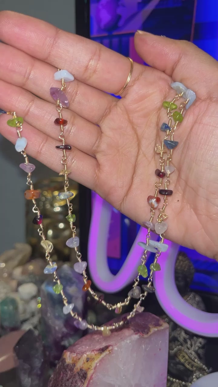 Cadena stainless steel con cuarzos mixtos: peridot, blue lace agate, amethyst, carnelian, sodalite, citrine y garnet.