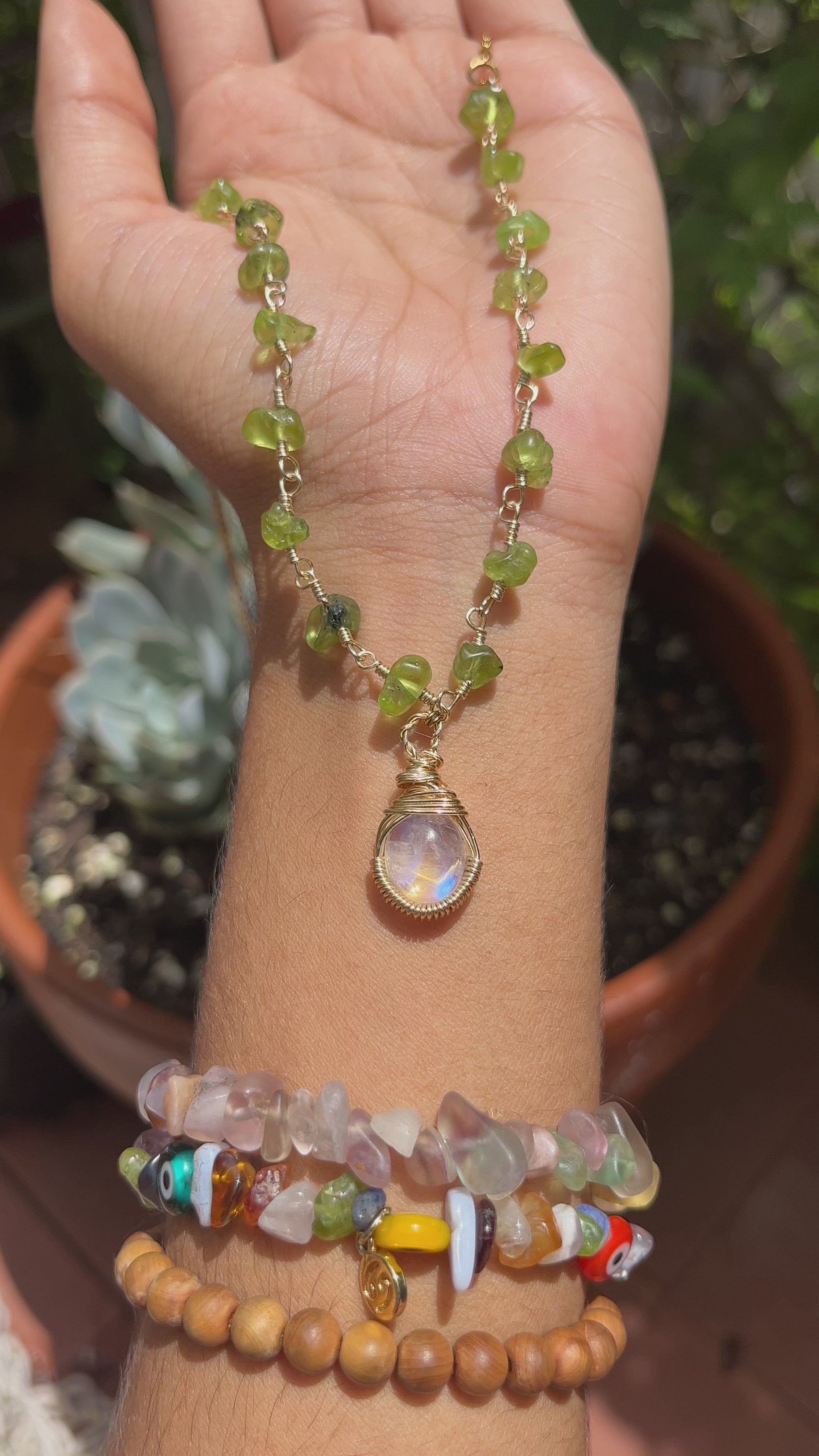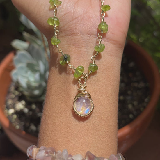 Moonstone and peridot necklace