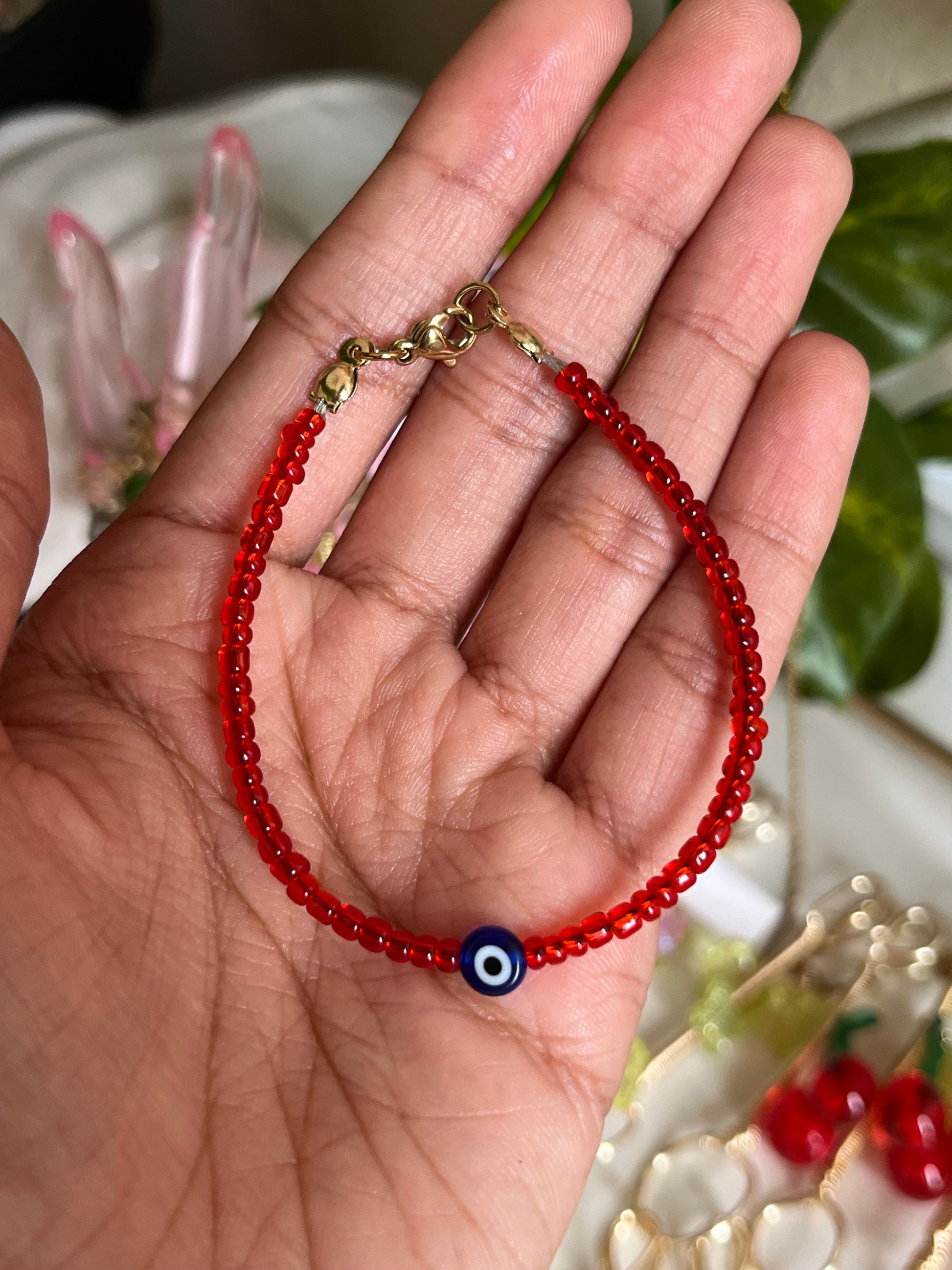 Tobillera hecho a mano de protección contra el mal de ojo y envidia.